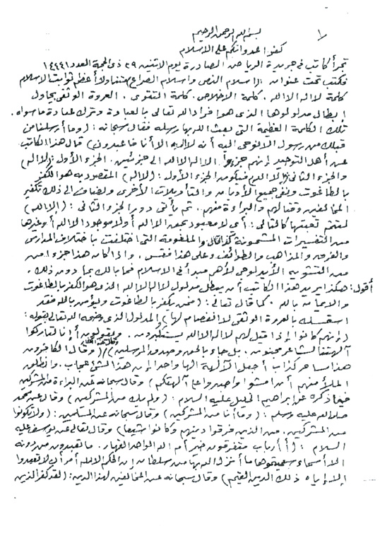 تجرأ كاتب في جريدة الرياض الصادرة يوم الاثنين 29 ذي الحجة العدد 14441 فكتب تحت عنوان: [إسلام النص و إسلام الصراع] متناولاً أعظم ثوابت الإسلام كلمة لا إله إلا الله كلمة الإخلاص كلمة التقوى العروة الوثقى يحاول إبطال مدلولها الذي هو إفراد الله تعالى بالعبادة وترك عبادة ما سواه تلك الكلمة العظيمة التي بعث الله بها رسله فقال سبحانه: (وَمَا أَرْسَلْنَا مِنْ قَبْلِكَ مِنْ رَسُولٍ إِلاَّ نُوحِي إِلَيْهِ أَنَّهُ لا إِلَهَ إِلاَّ أَنَا فَاعْبُدُونِ)، قال هذا الكاتب عن أهل التوحيد (إنهم جزءوا لا إله إلا الله جزئين الجزء الأول: (لا إِلَهَ)، والجزء الثاني (إِلاَّ اللَّهُ)، فيكون الجزء الأول: (لا إِلَهَ)، المقصود به هو الكفر بالطاغوت ونفي جميع الأديان والتأويلات الأخرى ويضاف إلى ذلك تكفير المخالفين وقتالهم والبراءة منهم ثم يأتي دور الجزء الثاني: (إِلاَّ اللَّهُ)، لتتم تعبئتها كالتالي: أي لا معبود بحق إلا الله أو لا موجود إلا الله أو غيرها من التفسيرات المشحونة - كذا قال - والملغومة التي اختلفت باختلاف المدارس والفرق والمذاهب والطوائف وعلى هذا فقس وإذا كان هذا جزء من التشويه الأيدلوجي لأهم مبدأ في الإسلام فما بالك بما دون ذلك)، أقول: هكذا يريد هذا الكاتب أن يبطل مدلول لا إله إلا الله الذي هو الكفر بالطاغوت والإيمان بالله كما قال تعالى: (فَمَنْ يَكْفُرْ بِالطَّاغُوتِ وَيُؤْمِنْ بِاللَّهِ فَقَدْ اسْتَمْسَكَ بِالْعُرْوَةِ الْوُثْقَى لا انفِصَامَ لَهَا)، والمدلول الذي وضحه الله تعالى بقوله: (إِنَّهُمْ كَانُوا إِذَا قِيلَ لَهُمْ لا إِلَهَ إِلاَّ اللَّهُ يَسْتَكْبِرُونَ* وَيَقُولُونَ أَئِنَّا لَتَارِكُوا آلِهَتِنَا لِشَاعِرٍ مَجْنُونٍ* بَلْ جَاءَ بِالْحَقِّ وَصَدَّقَ الْمُرْسَلِينَ)، وقال عن الكفار (وَقَالَ الْكَافِرُونَ هَذَا سَاحِرٌ كَذَّابٌ* أَجَعَلَ الآلِهَةَ إِلَهاً وَاحِداً إِنَّ هَذَا لَشَيْءٌ عُجَابٌ* وَانطَلَقَ الْمَلأ مِنْهُمْ أَنْ امْشُوا وَاصْبِرُوا عَلَى آلِهَتِكُمْ)، وقال سبحانه عن البراءة من المشركين فيما ذكره عن إبراهيم الخليل عليه السلام: (وَلَمْ يَكُ مِنَ الْمُشْرِكِينَ)، وقال عن محمد صلى الله عليه وسلم: (وَمَا أَنَا مِنْ الْمُشْرِكِينَ)، وقال سبحانه عن المسلمين: (وَلا تَكُونُوا مِنْ الْمُشْرِكِينَ* مِنْ الَّذِينَ فَرَّقُوا دِينَهُمْ وَكَانُوا شِيَعاً)، وقال تعالى عن يوسف عليه السلام: (أَأَرْبَابٌ مُتَفَرِّقُونَ خَيْرٌ أَمْ اللَّهُ الْوَاحِدُ الْقَهَّارُ* مَا تَعْبُدُونَ مِنْ دُونِهِ إِلاَّ أَسْمَاءً سَمَّيْتُمُوهَا أَنْتُمْ وَآبَاؤُكُمْ مَا أَنزَلَ اللَّهُ بِهَا مِنْ سُلْطَانٍ إِنْ الْحُكْمُ إِلاَّ لِلَّهِ أَمَرَ أَلاَّ تَعْبُدُوا إِلاَّ إِيَّاهُ ذَلِكَ الدِّينُ الْقَيِّمُ)، وقال سبحانه عن المخالفين لهذا الدين: (لَقَدْ كَفَرَ الَّذِينَ قَالُوا إِنَّ اللَّهَ ثَالِثُ ثَلاثَةٍ وَمَا مِنْ إِلَهٍ إِلاَّ إِلَهٌ وَاحِدٌ)، وأمر بقتالهم فقال سبحانه: (فَاقْتُلُوا الْمُشْرِكِينَ حَيْثُ وَجَدْتُمُوهُمْ)، (قَاتِلُوا الَّذِينَ لا يُؤْمِنُونَ بِاللَّهِ وَلا بِالْيَوْمِ الآخِرِ)، (وَقَاتِلُوهُمْ حَتَّى لا تَكُونَ فِتْنَةٌ وَيَكُونَ الدِّينُ لِلَّهِ)، وأمر بالبراء منهم فقال سبحانه (لا تَجِدُ قَوْماً يُؤْمِنُونَ بِاللَّهِ وَالْيَوْمِ الآخِرِ يُوَادُّونَ مَنْ حَادَّ اللَّهَ وَرَسُولَهُ وَلَوْ كَانُوا آبَاءَهُمْ أَوْ أَبْنَاءَهُمْ أَوْ إِخْوَانَهُمْ أَوْ عَشِيرَتَهُمْ)، وكل هذا يبطله الكاتب ويعتبره تشويها بجـرة قلم – ولما خاف الكاتب من غيرة أهل التوحيد على عقيدتهم التي مزقها بقلمه شر ممزق قال: (من الطبيعي أن يثير هذا الطرح سدنة القديم وحراس السائد وجنود المألوف وأن يجلبوا بخيلهم ورجلهم عليه وعلى طارحيه لأنه يزعزع المكتسبات الكثيرة التي يتمتعون بها وينزع مخالب السلطة التي يتولون بها على الناس ويكسر سيوفهم المصلتة على رقاب العباد)، وأقو